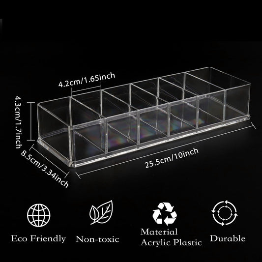 Acrylic Makeup Organizer Cosmetic Storage Makeup Display Case Lipstick Holder Dispenser Adjustable Canister Bathroom Container (10 x 3.4 x 1.9 inches, 6 Partitions, Transparent)