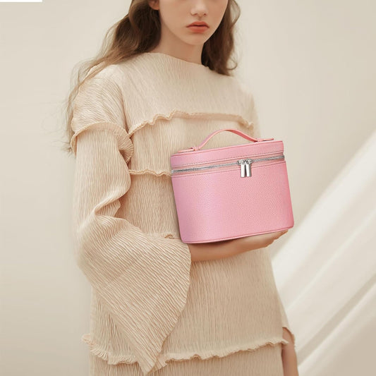 Makeup Bag Vanity Case Cosmetic Bag with Removable Divider Travel Toiletry Bag for Women Portable Make up Box Organizer, Pink
