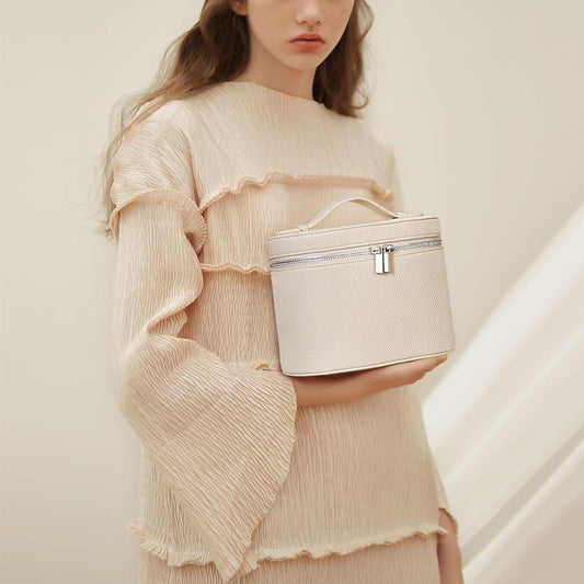 Makeup Bag Vanity Case Cosmetic Bag with Removable Divider Travel Toiletry Bag for Women Portable Make up Box Organizer, White