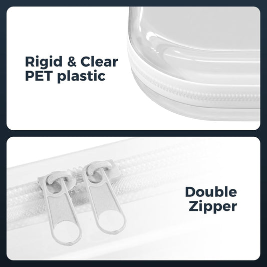 Clear Hard Plastic Zipper Case,Transparent Double Zippers Hard Pouch with 3pcs,Portable Travel Organizer Bin for Toy Storage