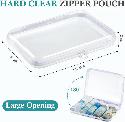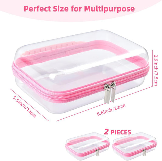 2 Pack Clear Hard Zipper Case, Hard PC Plastic Cosmetic Travel Bag with Zipper, Portable Travel Organizer Bins, Durable Makeup Bags for Toy Storage, Pencil Case