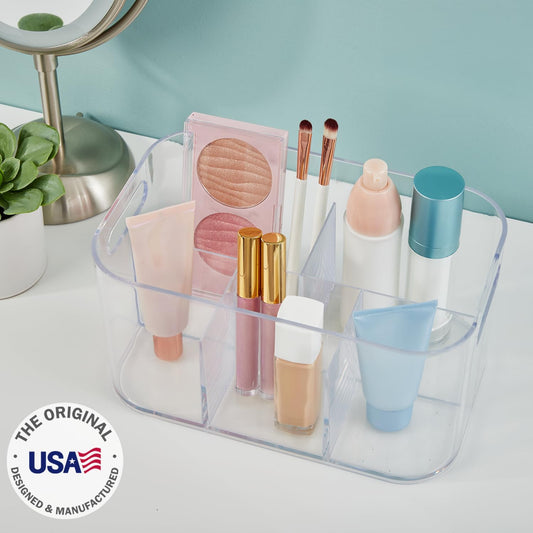 STORi Bliss 5-Compartment Plastic Cosmetics Storage Organizer | Clear | Rectangular Divided Makeup Bin & Vanity Caddy with Pass-Through Handles | Round Corner Design | Made in USA