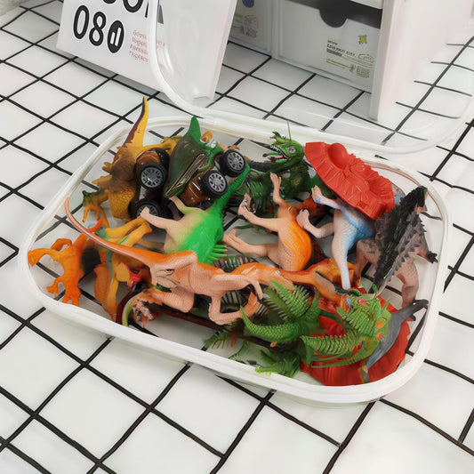 Clear Hard Plastic Zipper Case,Transparent Double Zippers Hard Pouch with 6pcs,Portable Travel Organizer Bin for Toy Storage
