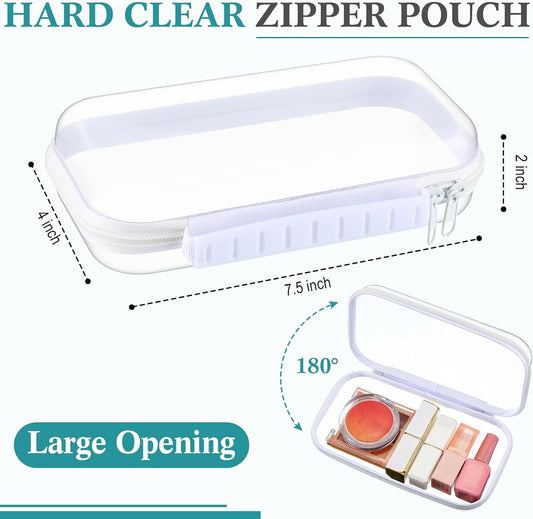 4 Pack 7.5x5.1x2.8 inch Clear Hard Zipper Pouch,Portable Waterproof Cosmetic Bag with Zipper,Makaup Bag,Toy Storage Organizer Bins,Hard Plastic Case for Organizing,Pencil Case