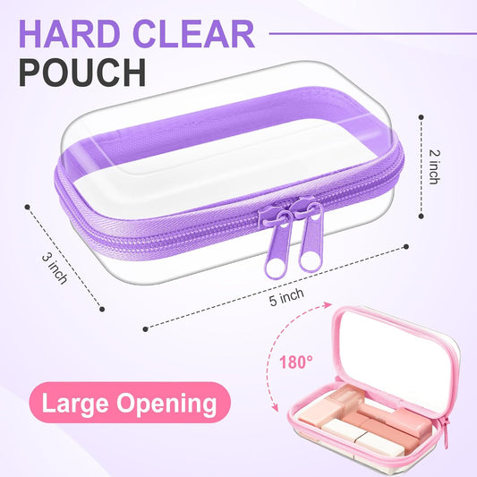 Sanwuta 6 Pcs Clear Hard Zipper Case Pencil Pouches Hard Plastic Zipper Pouches Makeup Bag Transparent Cases for Snacks Plastic Storage Organizer Box for Travel(Purple,7.87 x 5.9 x 2 Inch)
