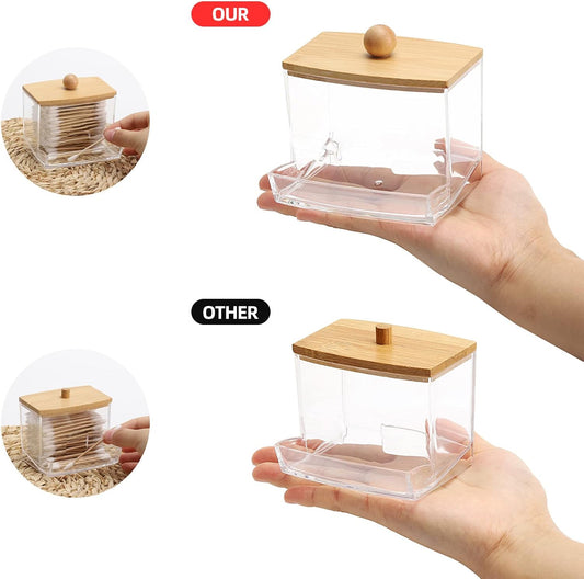 Tbestmax Qtip Holder with Vanity Tray, Clear Bathroom Containers Dispenser for Storage Cotton Swab/Ball/Pad Holder Wood Lids