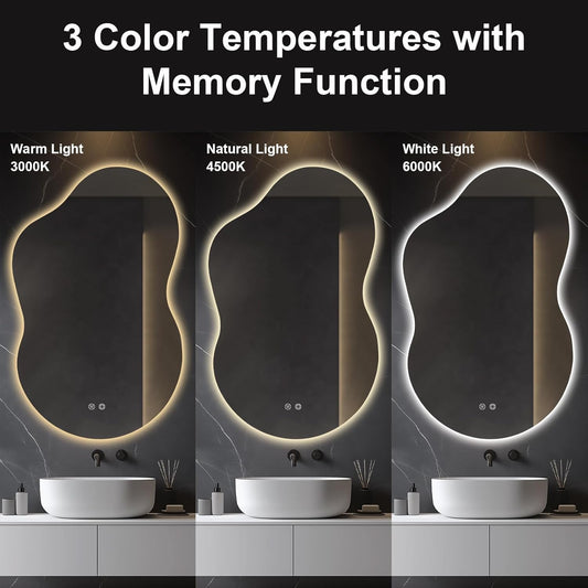 Asymmetrical LED Bathroom Mirror with Lights,Irregular Led Bathroom Vanity Mirror for Wall with Front and Backlit, Anti Fog, 3 Colors and Dimmable Light,[Horizontal/Vertical] 40" H x 30" W