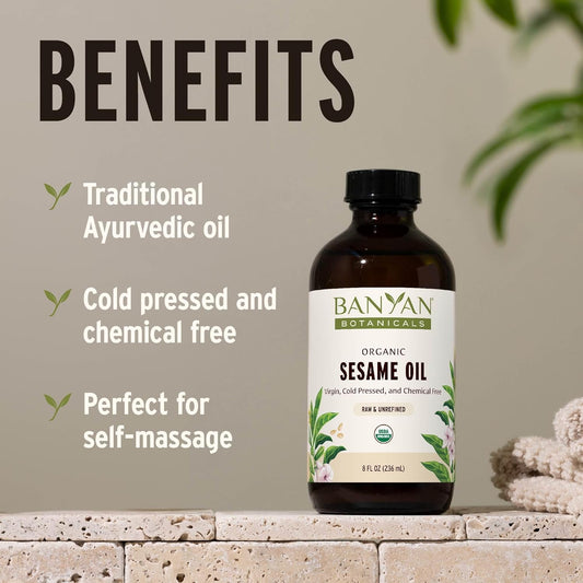 Banyan Botanicals Sesame Oil – Organic & Unrefined Ayurvedic Oil for Skin, Hair, Oil Pulling & More – Multiple Sizes – 16oz. – Non GMO Sustainably Sourced Vegan