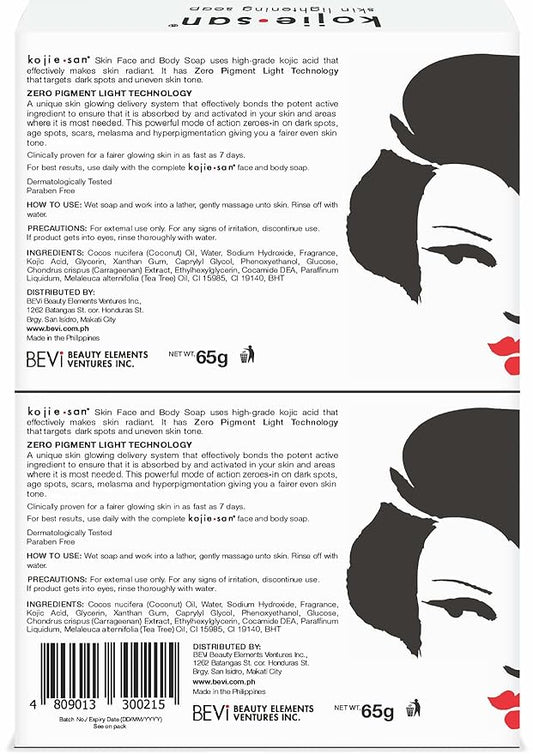Kojie San Skin and Body Soap 2 Piece Set – Original Kojic Acid, Dark Spot Remover Soap Bar with Coconut & Tea Tree Oil – 65g x 2 Bars & 30g Face Cream