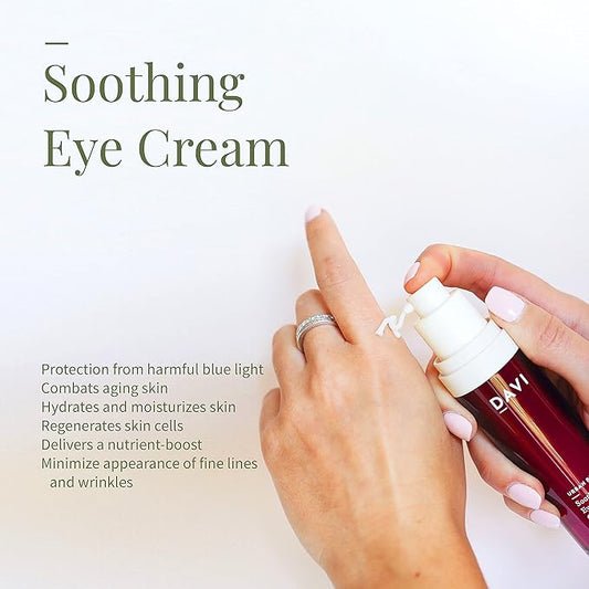 DAVI Soothing Eye Cream with Blue Light Protection | Under Eye Cream for Dark Circles and Puffiness | Anti-Aging Eye Cream for Dry Skin | All Natural | Non-GMO | Paraben-Free | Cruelty-Free | 1 Fl Oz