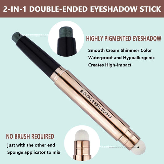 2 in 1 Cream Eyeshadow Stick, Shimmer Smooth Eyeshadow Pencil, Hypoallergenic Waterproof Long Lasting Eye Shadow Highlighter Stick, Create High-Impact, Multi-Dimensional Eyes Look