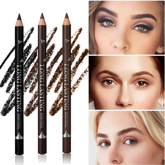 6Pcs Eyebrow Pencils for Women, Wooden Hard-Core Eyebrow Pencil, Eyebrow and Eyeliner Pencils, Waterproof and Sweat-Proof (3Pcs Dark brown+2Pcs medium brown+1Pcs Black)