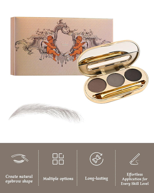 Waterproof Eyebrow Powder Kit - 3 Colors Long-Lasting Brow Powder Palette with Brush Razor & Stencil, Natural Tinting Powder for Women Sparse Brows | #02 Medium Brown, Grey, Black
