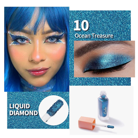 Oulac Blue Liquid Glitter Eyeshadow Liquid Shimmer Eyeshadow Liquid Eyeliner Non-sticky One-Swipe Coverage with Quick-Drying Crease-resistant Formula.Vegan & Cruelty-Free.(10)
