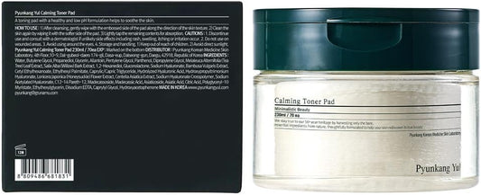 Pyunkang Yul PKY Calming Toner Pad with Tea Tree, 5 Hyaluronic Acids, Removes Dead Skin Cells, Moisturizes, Korean Face Skin Care, Acne Prone & Sensitive Skin, Double-Sided Pad 7.7 fl.oz 70ea