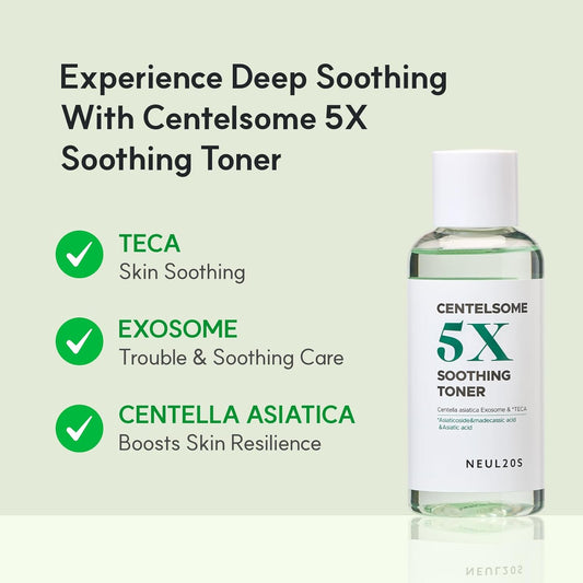 Centelsome 5X Soothing Toner 6.76 fl oz/200ml | Hydrating & Calming Korean Facial Toner with Green Tea, Centella Asiatica & Exosomes | Supports Sensitive, Dry & Acne-Prone Skin