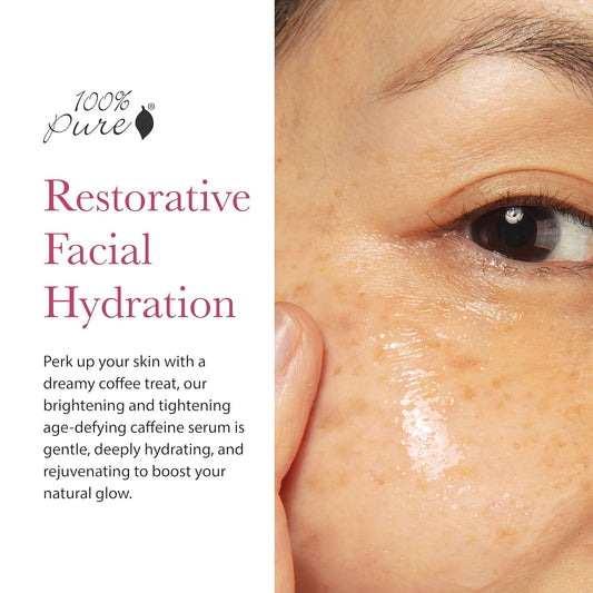 100% PURE Coffee Bean Face Serum EGCG, Licorice Root & Hyaluronic Acid Drops - Tighten, Brighten & Protect Daily Liquid Caffeine For Faded Skin - Ultimate Glow Skincare for Women & Men - 1 fl oz