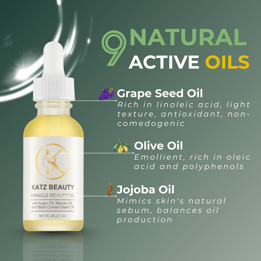 Katz Beauty Miracle Beauty Oil - Hydrating Face Oil with Jojoba, Argan & Marula Oil for Anti-Aging Glow, Non-Comedogenic
