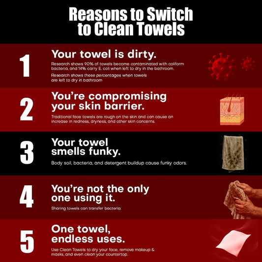 Clean Skin Club Clean Towels XL®, 100% USDA Biobased Face Towel, Disposable Face Towelette, Eczema Association Accepted, Makeup Remover Dry Wipes, Ultra Soft, 50 ct per pack, 3 Packs, 150 Ct Total