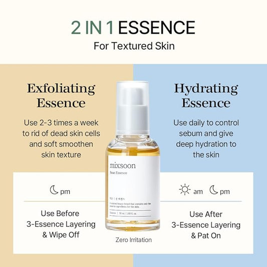 mixsoon Bean Essence, Vegansnail, Exfoliating Essence for face, Hydrating Korean Skin Care,Glassskin 1.69 fl.oz/50ml