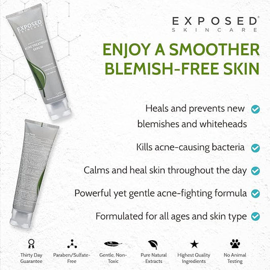 Exposed Skin Care Acne Treatment Kit - Includes Facial Cleanser, Clearing Tonic, Acne Treatment Serum, Clear Pore Serum, Clarifying Mask, Cloth - Natural Acne Solution for Face, All Ages & Skin Types