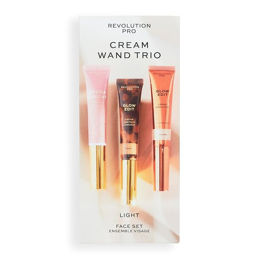 Cream Face Wand Trio, Cream Contour, Blush & Highlighter Makeup Set, Vegan & Cruelty Free, Light, 1 x 12 ml, 2 x 15 ml