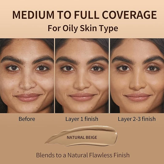 FV Full Coverage Liquid Foundation Makeup, Long Lasting Matte Foundation with Flawless Finish, Concealing & Minimizing Pores, Oil Control Waterproof for Oily Combination Skin, 1 Fl. Oz (Natural Beige)