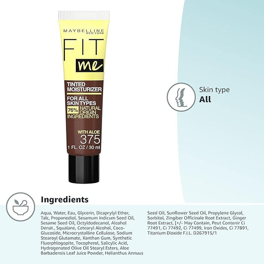 Maybelline Fit Me Tinted Moisturizer, Natural Coverage, Face Makeup, 375, 1 Count