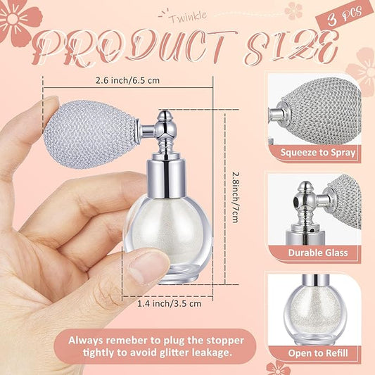 3 Pcs Glitter Spray for Hair and Body, Highlighter Shimmering Spray Powder High Gloss Body Glitter Spray Sparkle Powder for Face Body Cosmetic, Champagne, Pearl White, Bronze Color