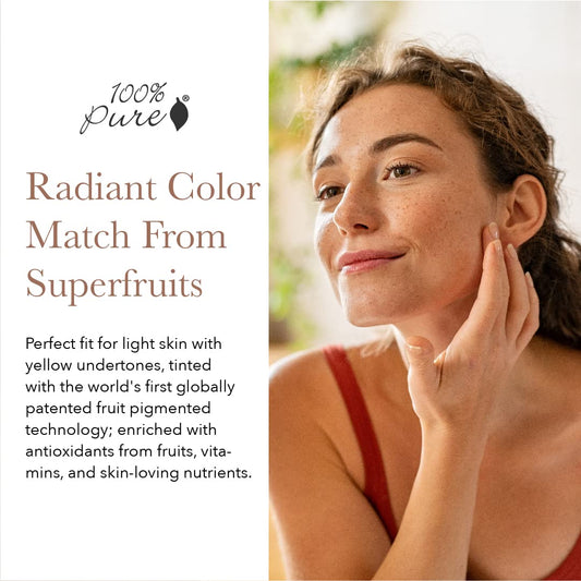 100% PURE Healthy Foundation Full Face Coverage Makeup, Liquid Matte Finish with Anti-Aging Benefits - Vegan Gorgeous Fruit Pigmented White Peach Color (Light with Warm Undertone) - 1 Fl Oz