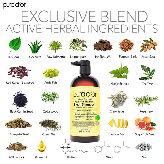 PURA D'OR Anti-Thinning Biotin Shampoo & Deep Moisturizing Conditioner Original Gold Label Set (24oz x2) Natural Earthy Scent, CLINICALLY TESTED Effective Results, Hair Thickening Product, Women & Men