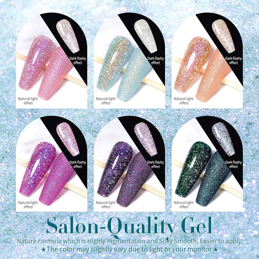 Born Pretty Reflective Glitter Gel Polish Christmas Gold Silver Glitter Sparkly Shiny Disco DJ LED Gel Nail Polish Nail Varnish 6PCS 7ML