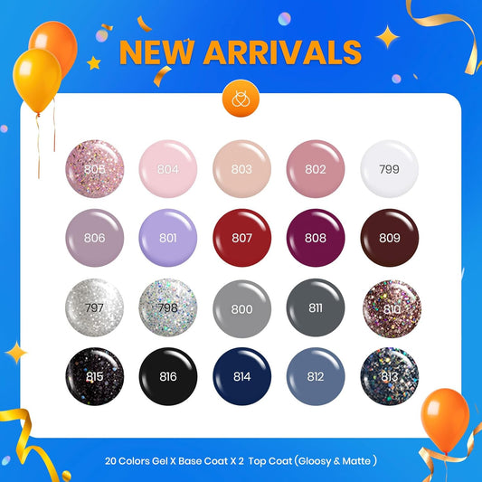 Beetles Gel Nail Polish Set, 20 Colors Blue Nude Pink Purple Orange Glitter Gel Polish Glamour Games Collection with Base Top Coat Nail Art Soak off Nail Manicure Gift for Girls Women