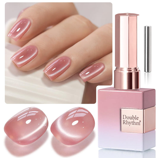 Double Rhythm 0.5 Oz Cat Eye Gel Polish with Magnet Same Color Same Bottle Holographic Glitter Shimmer Translucent Color Salon 15 ML Magnetic Nail Art (Nude Pink-MC1179)