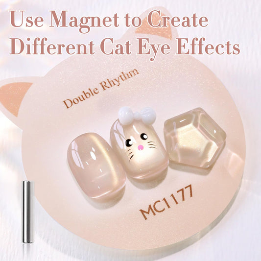 Double Rhythm 0.5 OZ Cat Eye Gel Polish with Magnet 15ML Holographic Glitter Shimmer Translucent Jelly Color Magnetic Nail Polish Salon DIY at Home (MC1031)