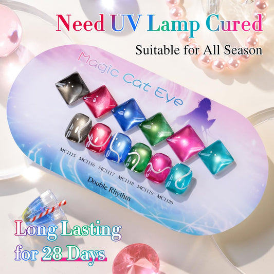 Double Rhythm 6 Colors Cat Eye Gel Polish Set Shimmer Glitter with Magnet Holographic Reflective Magnetic UV Nail Art Kit (6-Kit-47)