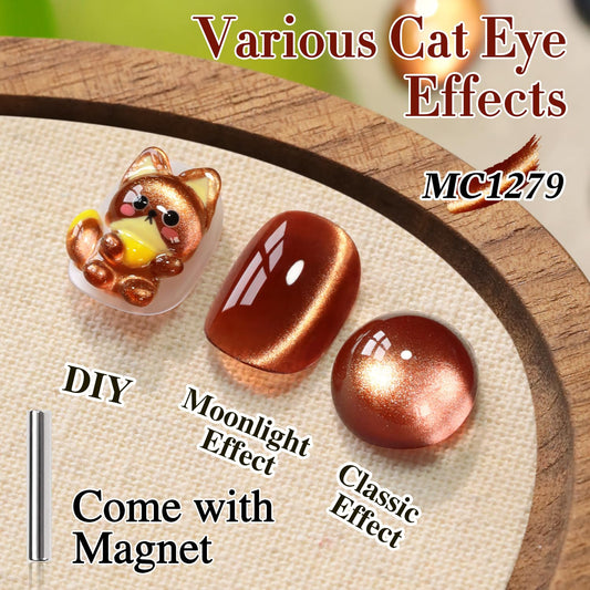 Double Rhythm 0.5 Oz Cat Eye Gel Polish with Magnet Same Color Same Bottle Holographic Glitter Shimmer Translucent Color Salon 15 ML Magnetic Nail Art (Red Brown-MC1279)