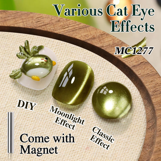 Double Rhythm 0.5 Oz Cat Eye Gel Polish with Magnet Same Color Same Bottle Holographic Glitter Shimmer Translucent Color Salon 15 ML Magnetic Nail Art (Sage Green-MC1277)