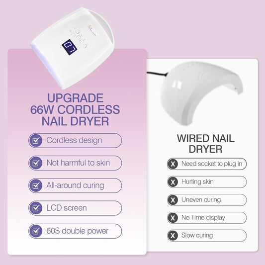 Cordless UV LED Nail Lamp, Rechargeable 66W UV Light Nail Curing Lamp for Gel Nail Acrylic Polish with Auto Sensor & 5 Timer for Home & Salon
