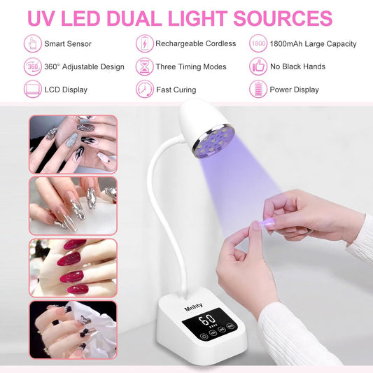 UV LED Nail Lamp - Gooseneck UV Light for Gel Nails Cordless USB 27W Nail Dryer 2 in 1 Gel Lamp and Desk Lamp with 4 Times & Auto Sensor Professional Fast Flash Curing Polish Nail Art(White)