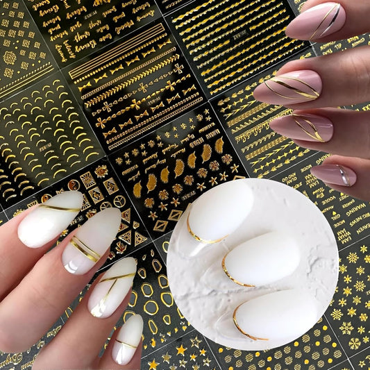 30 Sheets Gold Nail Art Stickers 3D Self-Adhesive Nail Decals Gold Line Star Moon Nail Stickers for Acrylic Nails Gold Stamp English Letter Nail Stickers Gold Leaf Diamond Nail Supplies for Women
