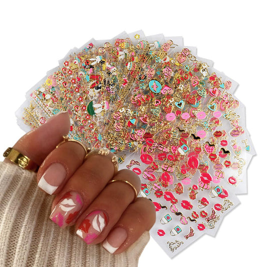 30Pcs Lips Nail Stickers for Valentine's Day 3D Gold Nail Decals Foils Nail Art Supplies Valentines Heart Red Lip Self-Adhesive Nail Design Metallic Nails Stickers for Women Girls DIY Decoration