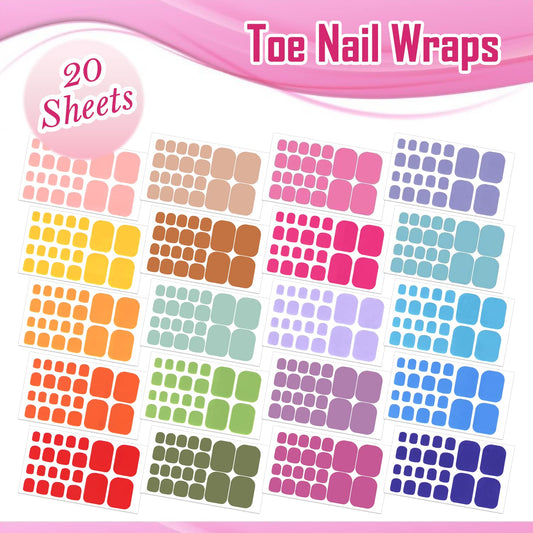 WOKOTO 20 Sheets Full Toe Nail Wraps Self-Adhesive Solid Color Toenail Nail Polish Strips Stickers for Toe Nails Stickers Decals with 1 Piece Nail File Manicure Kit Stick On Nails Color Strips