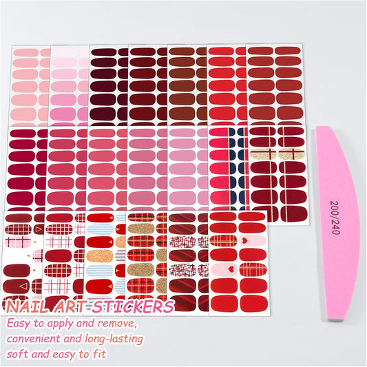 SILPECWEE 560 Pieces 40 Sheets Nail Polish Strips, Red Nail Stickers Full Nail Wraps for Women, Self Adhesive Gel Strips Manicure Design, Fingernail Sticker Nails with File