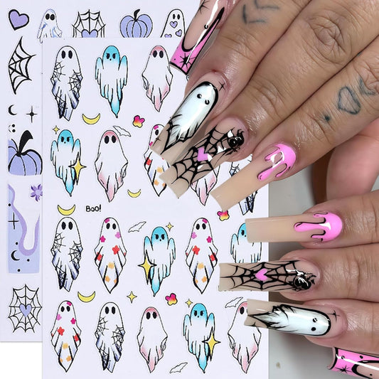 6Sheets Cute Ghost Nail Stickers for Nail Art,Micro-Relief Halloween Spider Nail Decals Pumpkin Cat Heart Spider Web Nail Designs Bat Star Nails Accessories for Women Acrylic Manicure Holiday Supplies