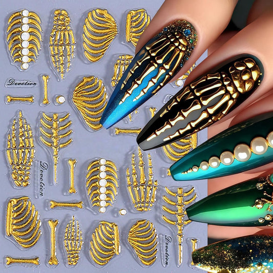 3 Sheets 5D Embossed Skull Nail Stickers for Nail Art Skeleton Nail Decals White Hand Bones Finger Skeleton Halloween Nail Art Supplies Gothic Nail Sticker for Women Halloween Nails Tips Decoration