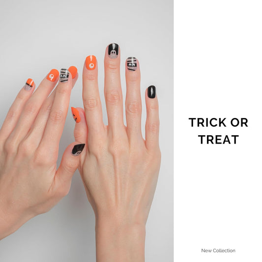 NAILOG Semi Cured Gel Nail Strips 34 pcs| Buy 2 Get 1 UV Lamp | Long Lasting Nail Polish Sticker Wraps with Glossy Gel Finish, Tricks or Treats