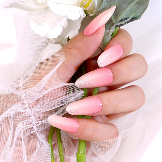 Semi Cured Gel Nail Strips - NAILOG 34 Pcs Gel Nail Stickers | Buy 2 Get 1 UV Light | Extra Long Nail Wraps with Glossy Gel Finishing Gradient Pink, Fairy Wand