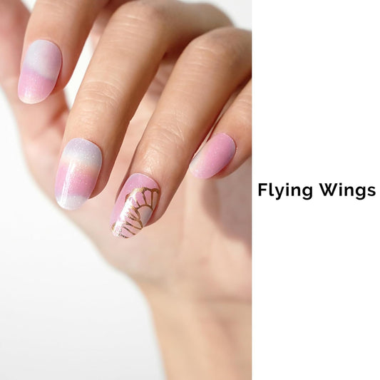 Semi Cured Gel Nail Strips - NAILOG 34 Pcs Rainbow Butterfly Gel Nail Stickers Pink Extra Long Nail Wraps with Glossy Gel Finishing for Spring Summer, Flying Wings