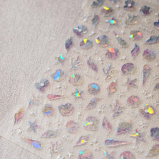 Aurora Ocean Nail Stickers Pearl Shell Conch Nail Designs Starfish Nail Decals 5D Embossed Silver Star Beach 3D Self-Adhesive Summer Nail Art Decoration for Women DIY Manicure 2 Sheets
